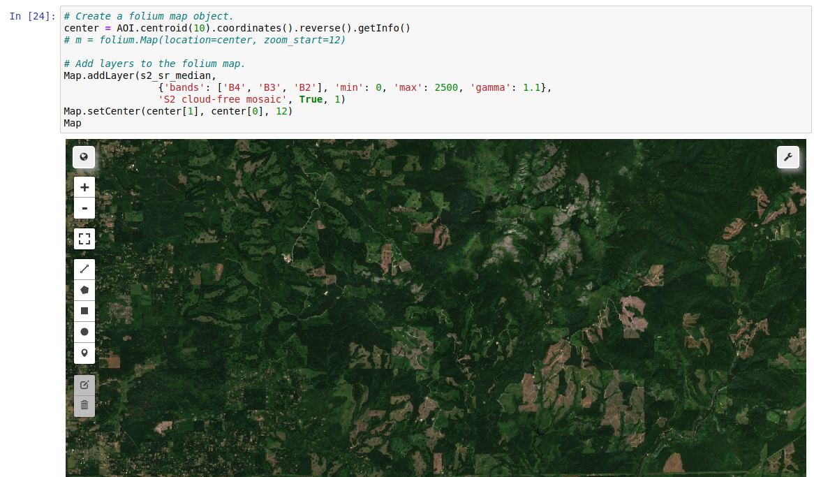 I recently ran this google developer team's s2cloudless notebook for my AOI (cloudy Puerto Rico) in jupyter notebook: https://developers.google.com/earth-engine/tutorials/community/sentinel-2-s2cloudless Question: How could I show the final s2cloudless data as a geemap? What code could I use? Thank you in advance for your consideration and support! |