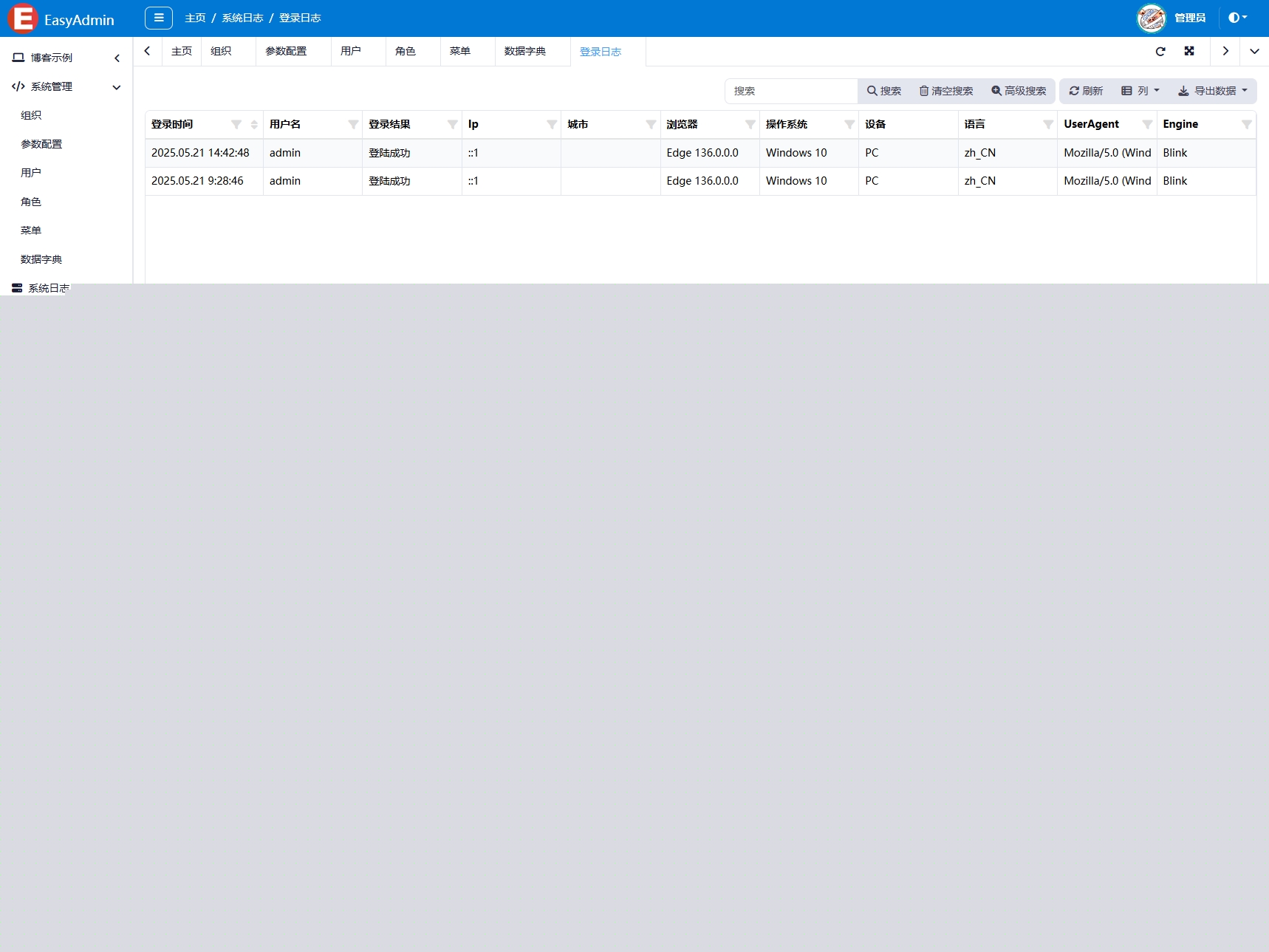 - 日志管理:管理系统登录日志。