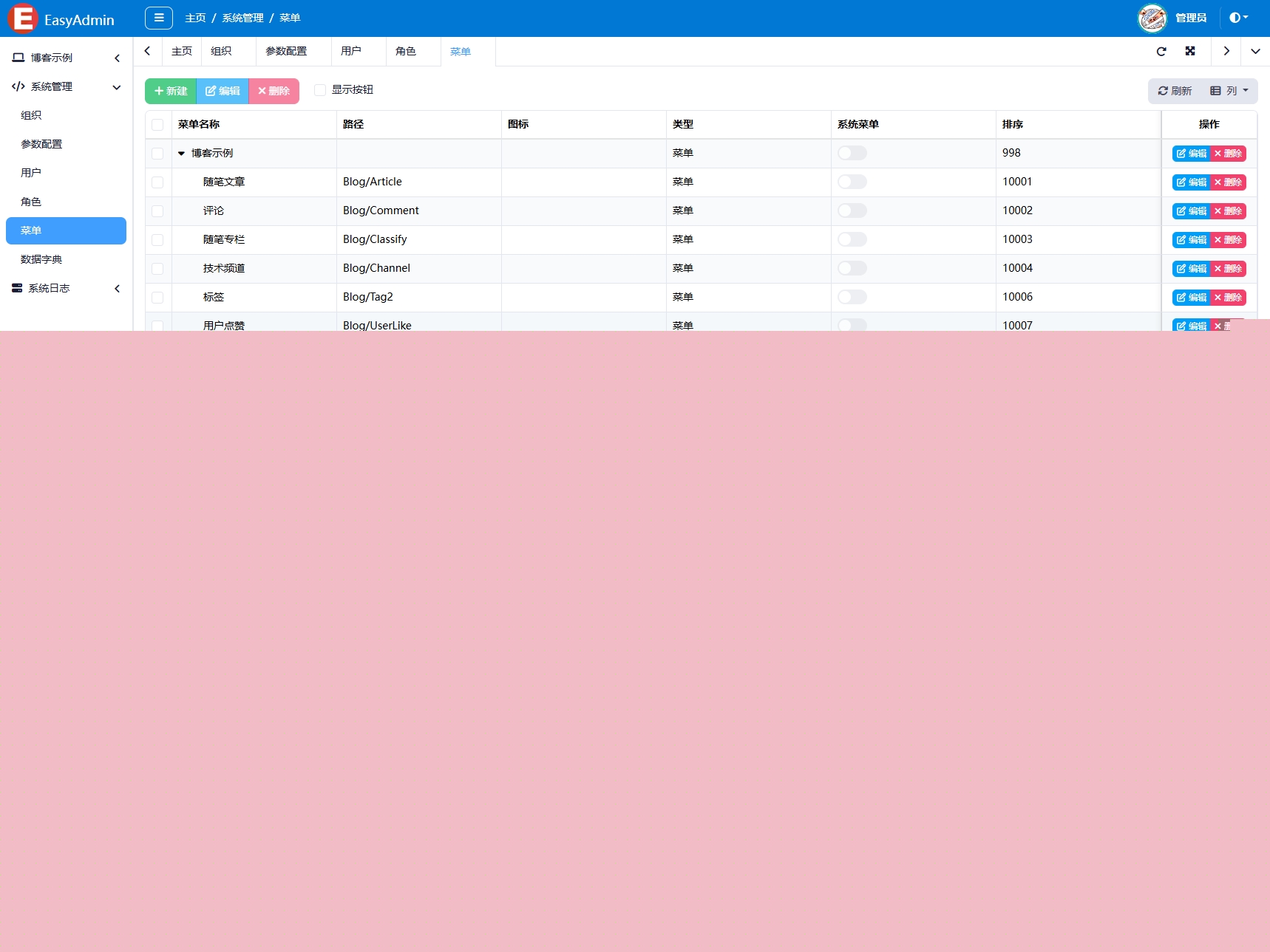 - 菜单管理:管理系统菜单,包括菜单信息的增删改查。