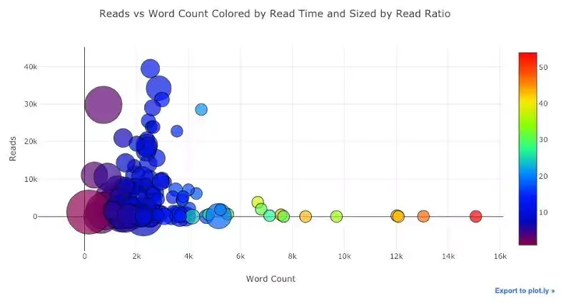 tds.iplot(x='word_count',y='reads', size='read_ratio',text=text, mode='markers',