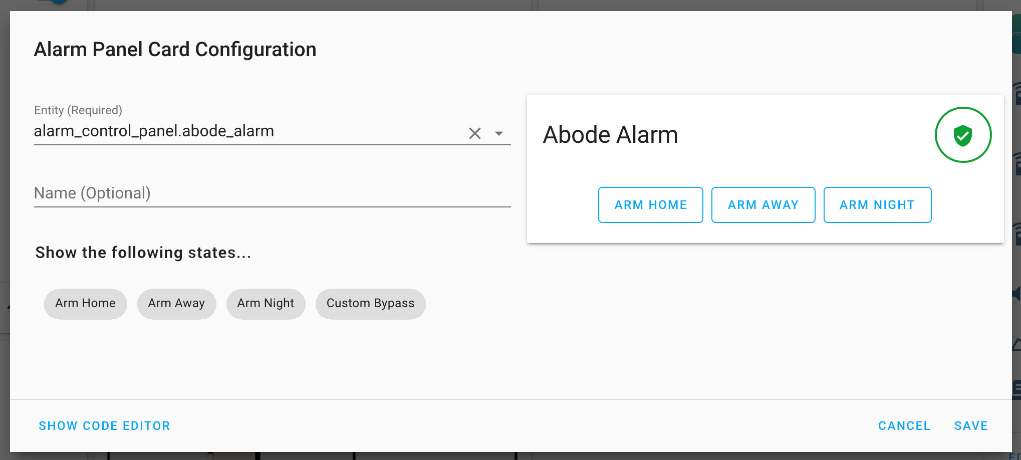 alarm_control_paneldomain is pretty lengthy, it's a very poor experience on mobile and even desktop.With the "Name" textfield moved underneath, the placeholder text should also indicate that it is an optional field.