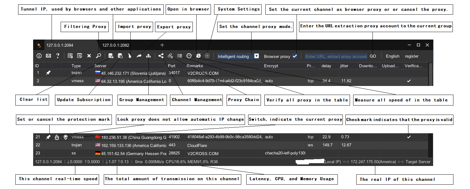 5. Each channel can be used as a browser proxy and can be switched at any time.