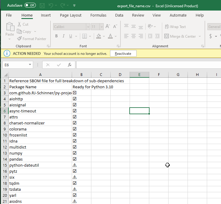 pyready PYTHON_VERSION SBOM_FILE_PATH --export EXPORT_FILE_NAME