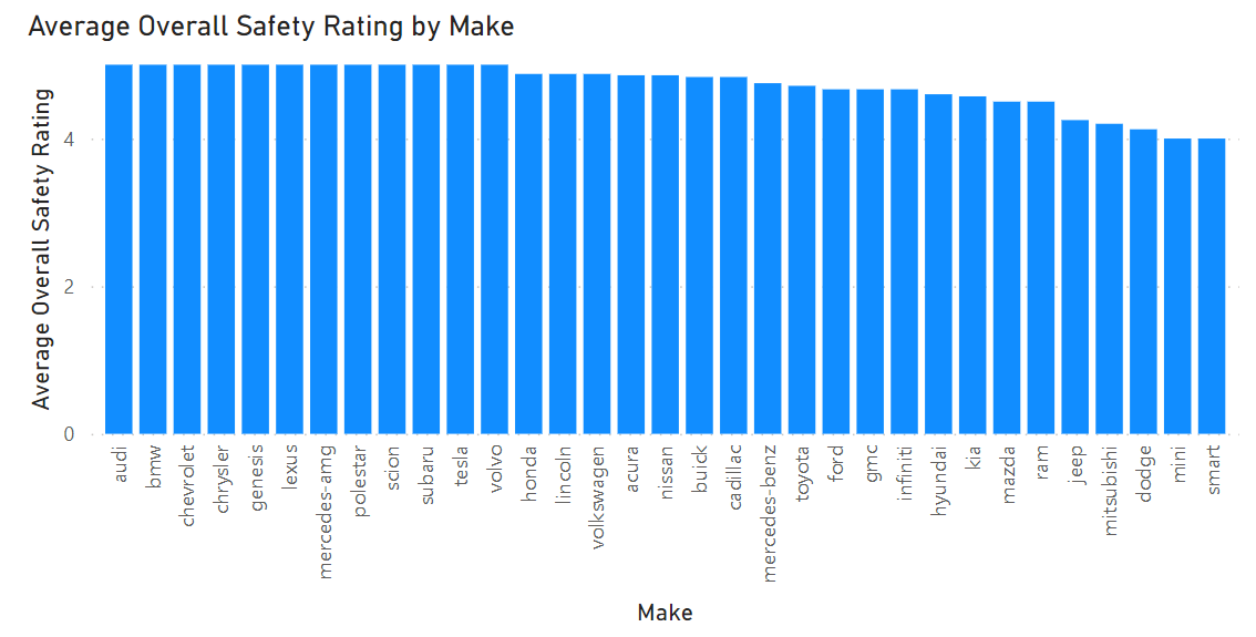 In its current state, visualization can be drawn from the data, including the following representation of crash safety ratings.