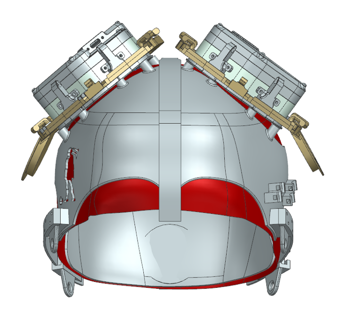 2. two modules, each of which contains LED sources and SiPM detectors and sits on the headcap