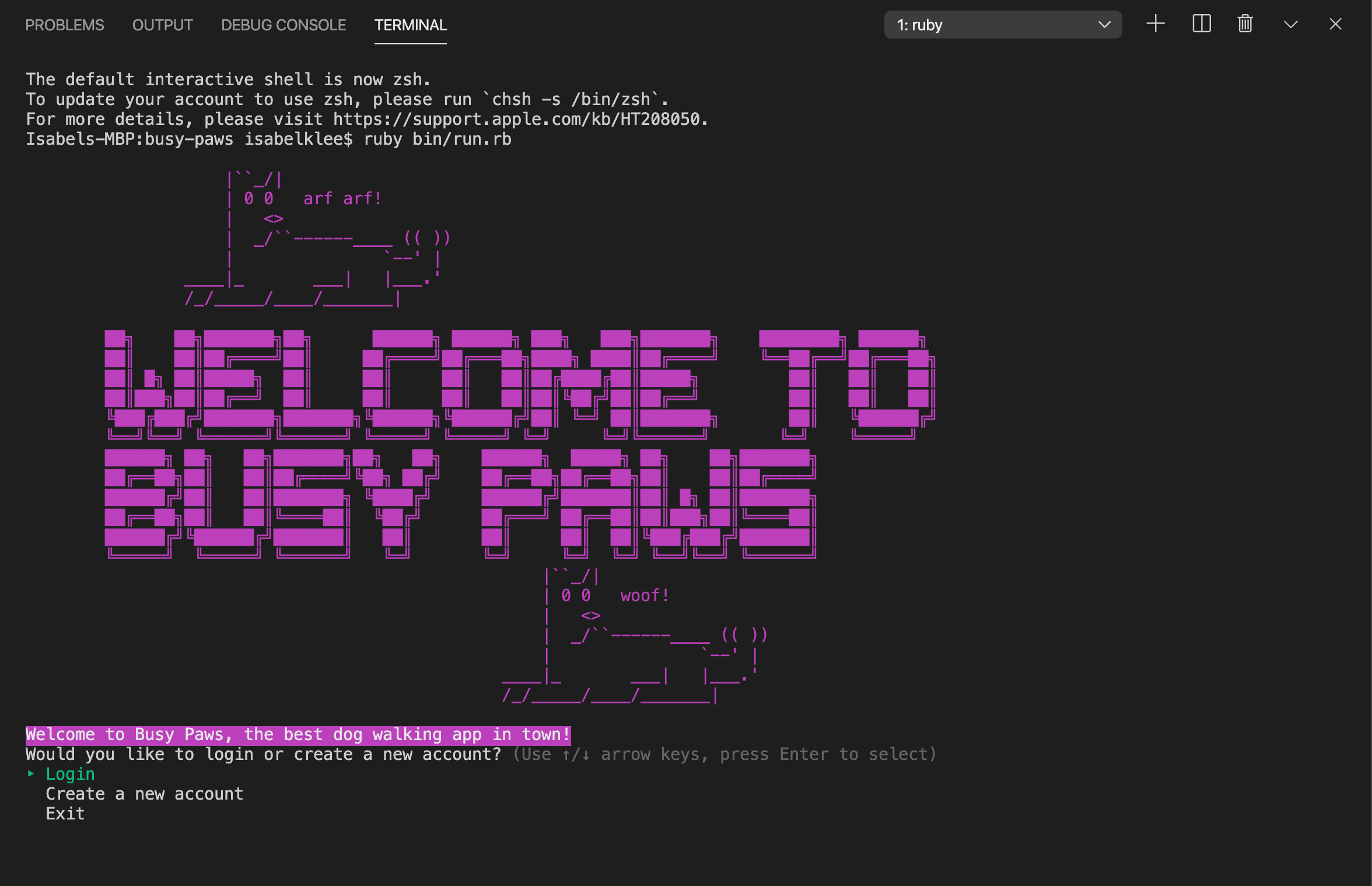 Busy Paws is a CLI app that allows you to book and manage dog walking appointments. Built using Ruby and Active Record.