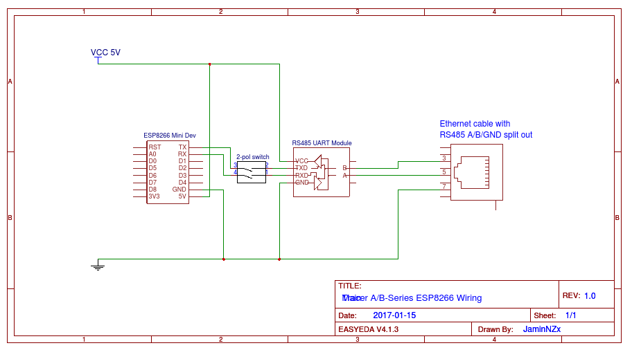 Follow the wiring guide below: (note that the 2-pol switch is only needed during flashing)