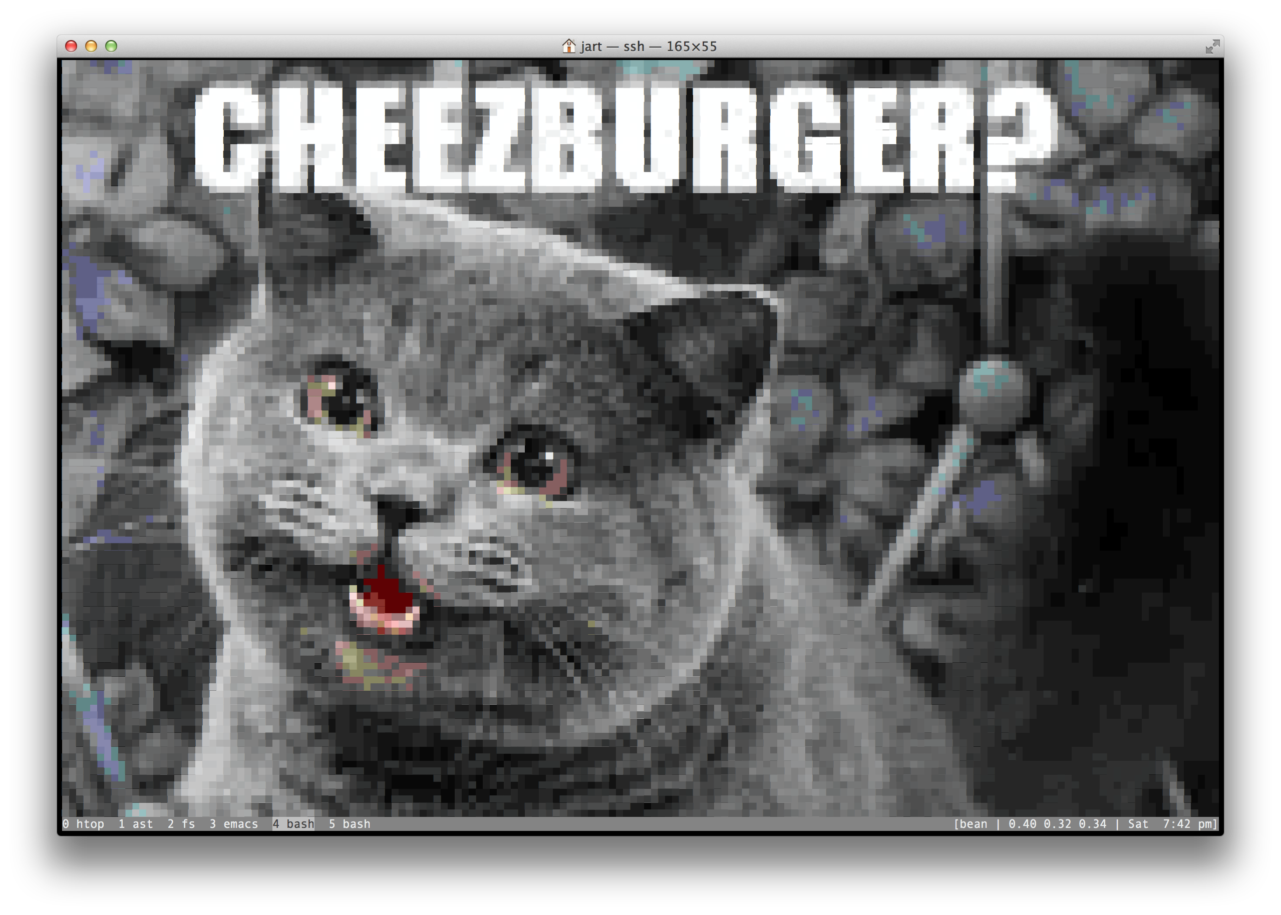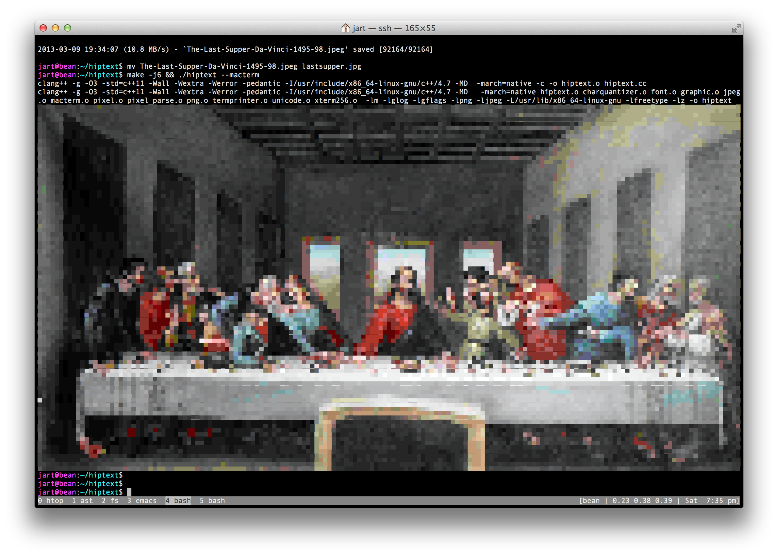 hiptext --sixel256 balls.png # For 256-color SIXEL terminal such as mlterm (>=v3.1.3)