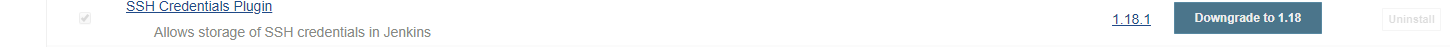 Plugins: SSH plugin 2.6.1 * SSH Build Agents 1.31.0 * SSH Credentials Plugin 1.18.1 *SSH Agent Plugin 1.19<br/>