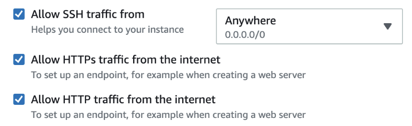 - Check all three boxes to create rules for SSH, HTTPs & HTTP traffic