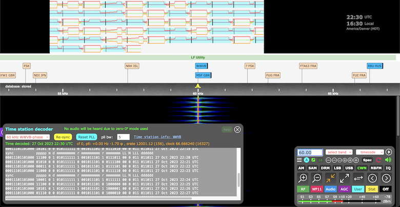 Decoding of time station WWVB (60 kHz, phase modulation) in Colorado.