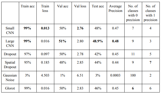 We have tried different approaches with this dataset. A comparison of all the approaches is shown below: