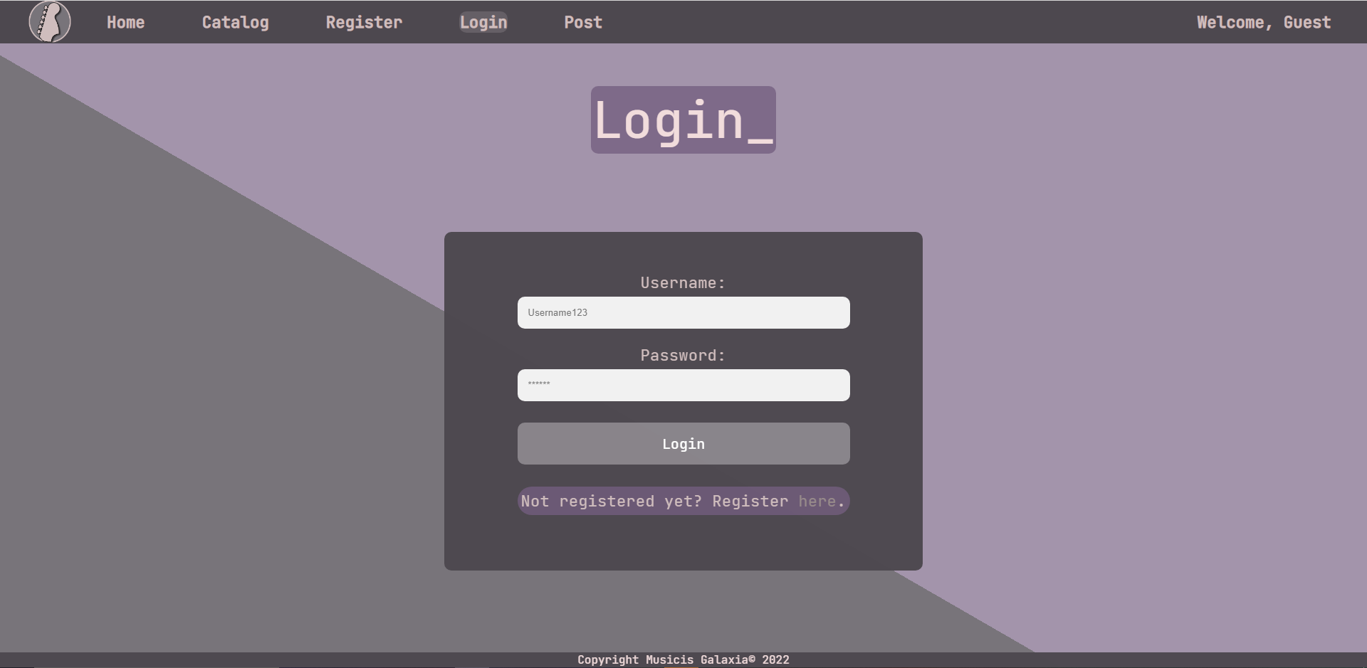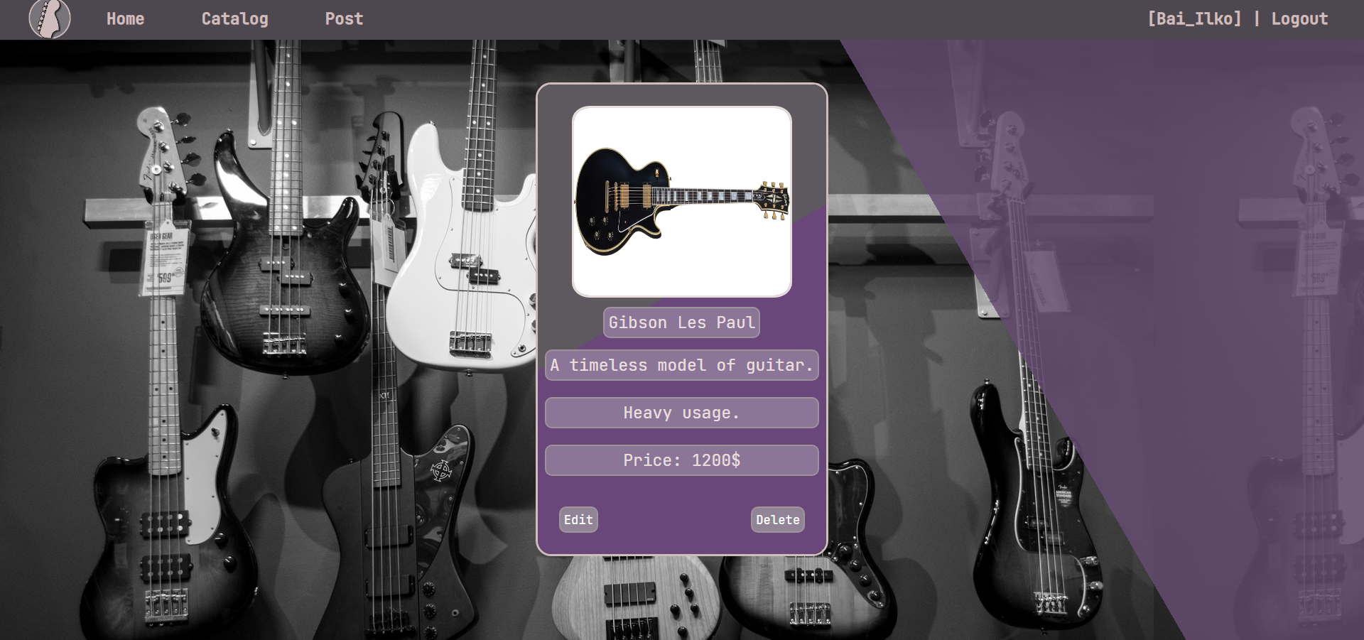 Every user is able to register and log in their profile. They are then able to post offers on instruments, amplifiers or miscellanious items such as strings, guitar picks, etc.