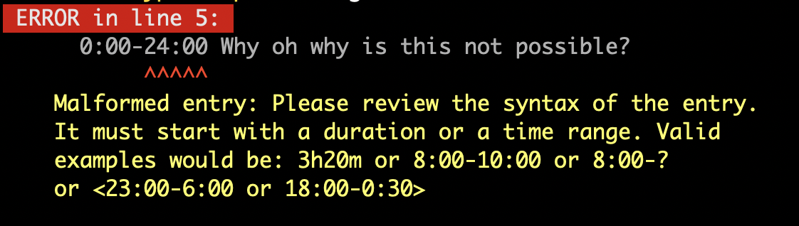 24:00, I think it was just because the underlying library I use behaves like this. (Seetime.go, but I have an explicit test for this.)0:00-24:00should be a total of24h.Beta Was this translation helpful? Give feedback.