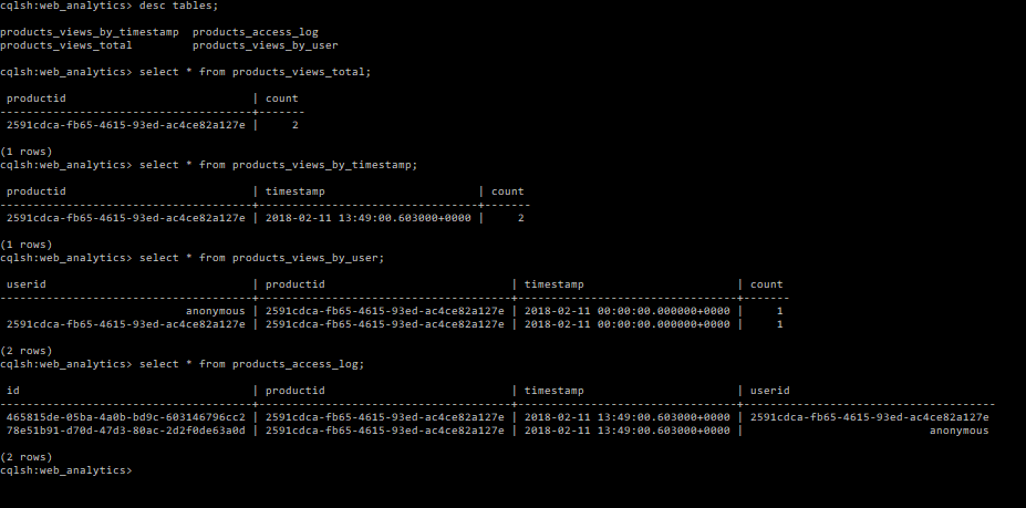 create table products_views_total(productId text PRIMARY KEY, count counter);