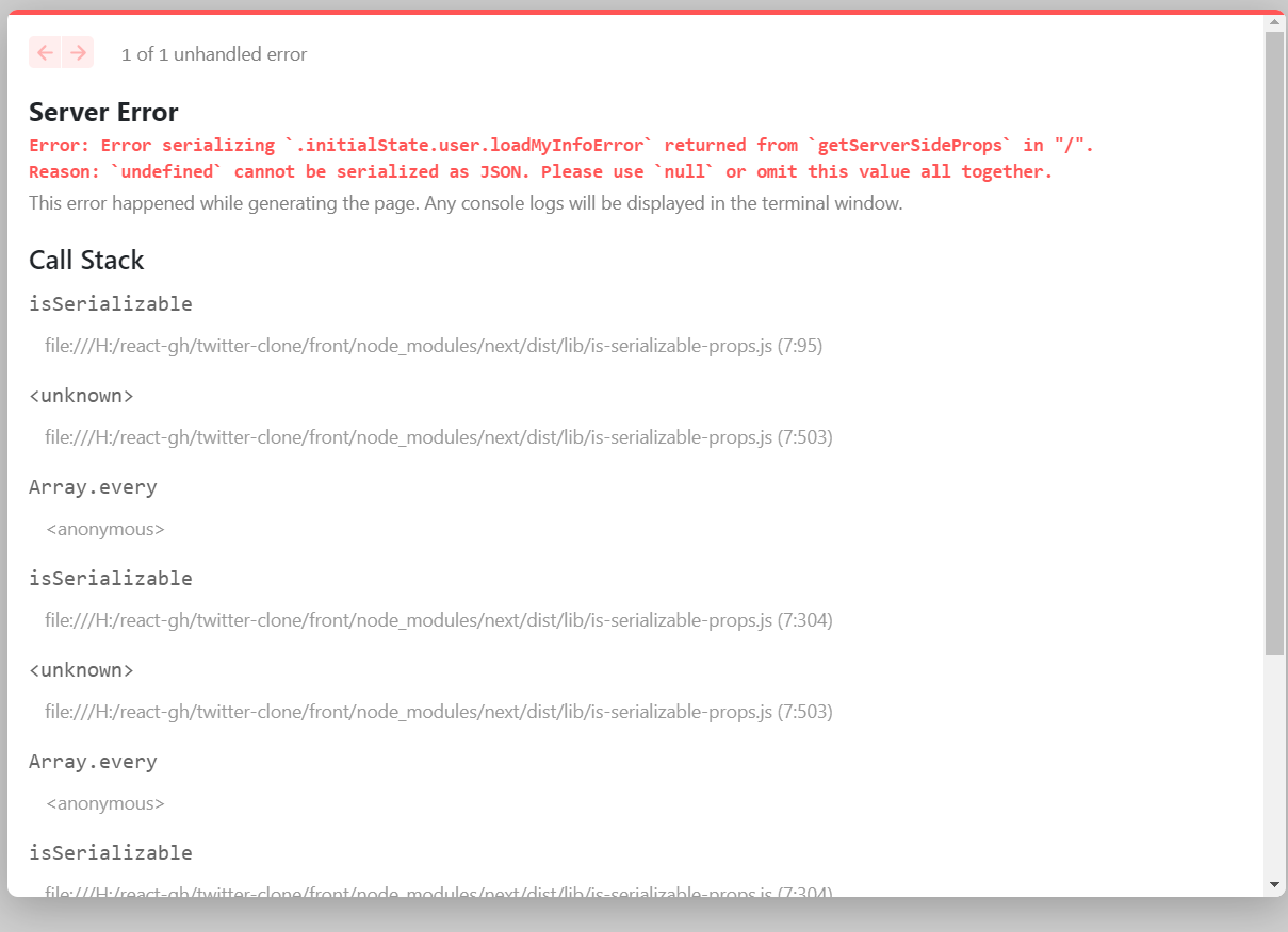 at isSerializable (H:\react-gh\twitter-clone\front\node_modules\next\dist\lib\is-serializable-props.js:7:95)