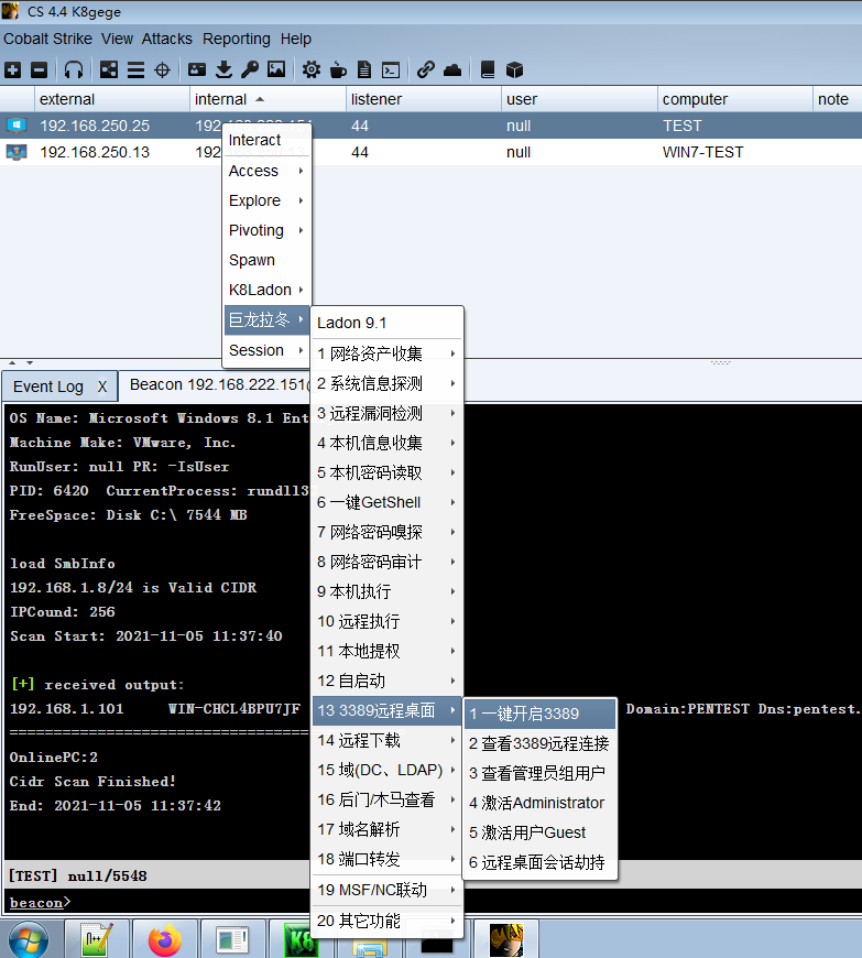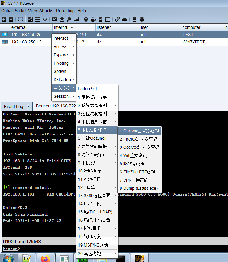 好了废话不多说上图,让我们看看Cobalt Strike 4.4巨龙拉冬插件功能
