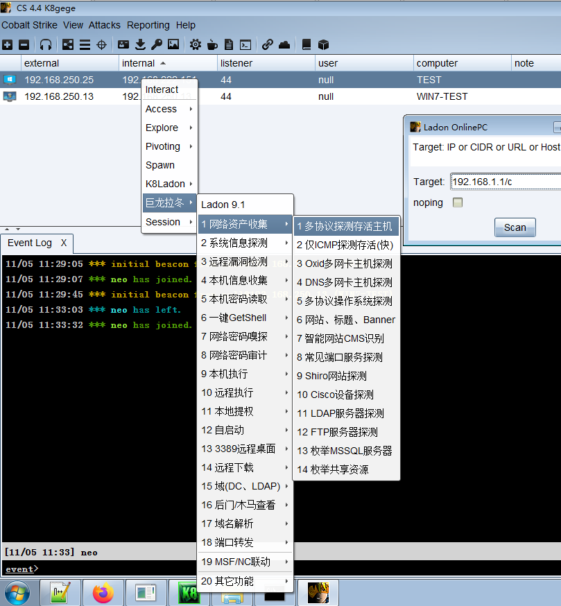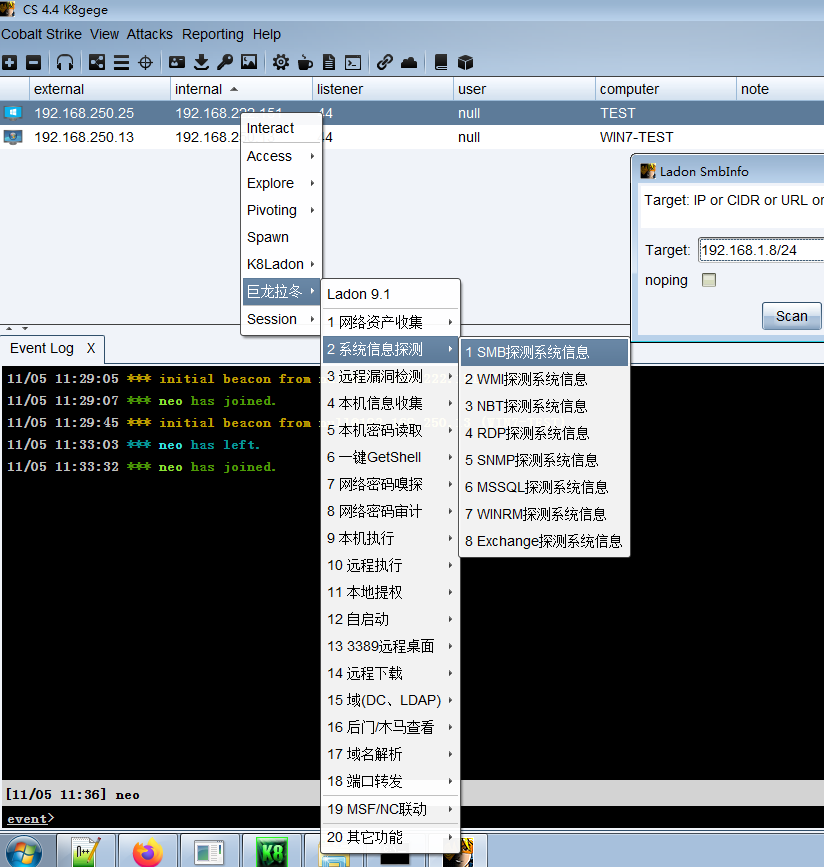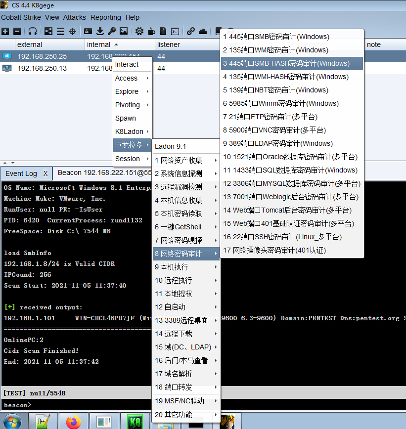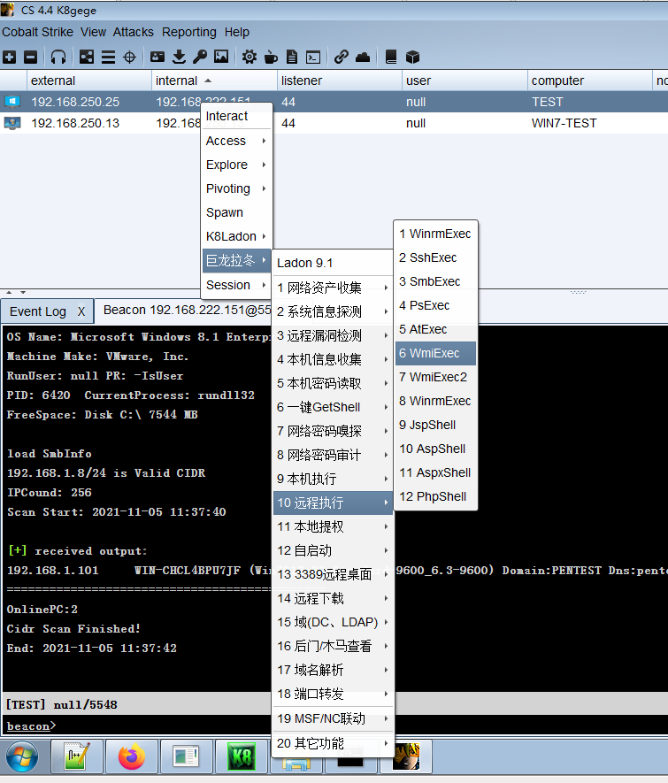 本文仅是Ladon简单使用例子,Cobalt Strike或PowerShell版用法一致。