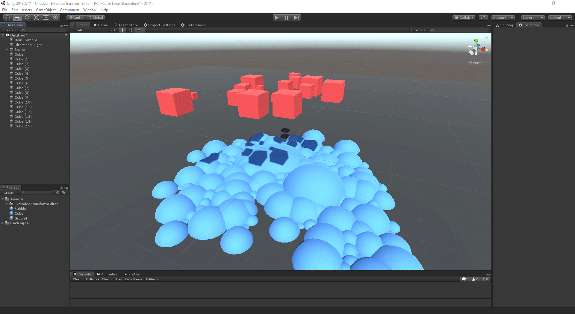 - The position, rotation and scale can all be reset from small buttons to the right of each field.