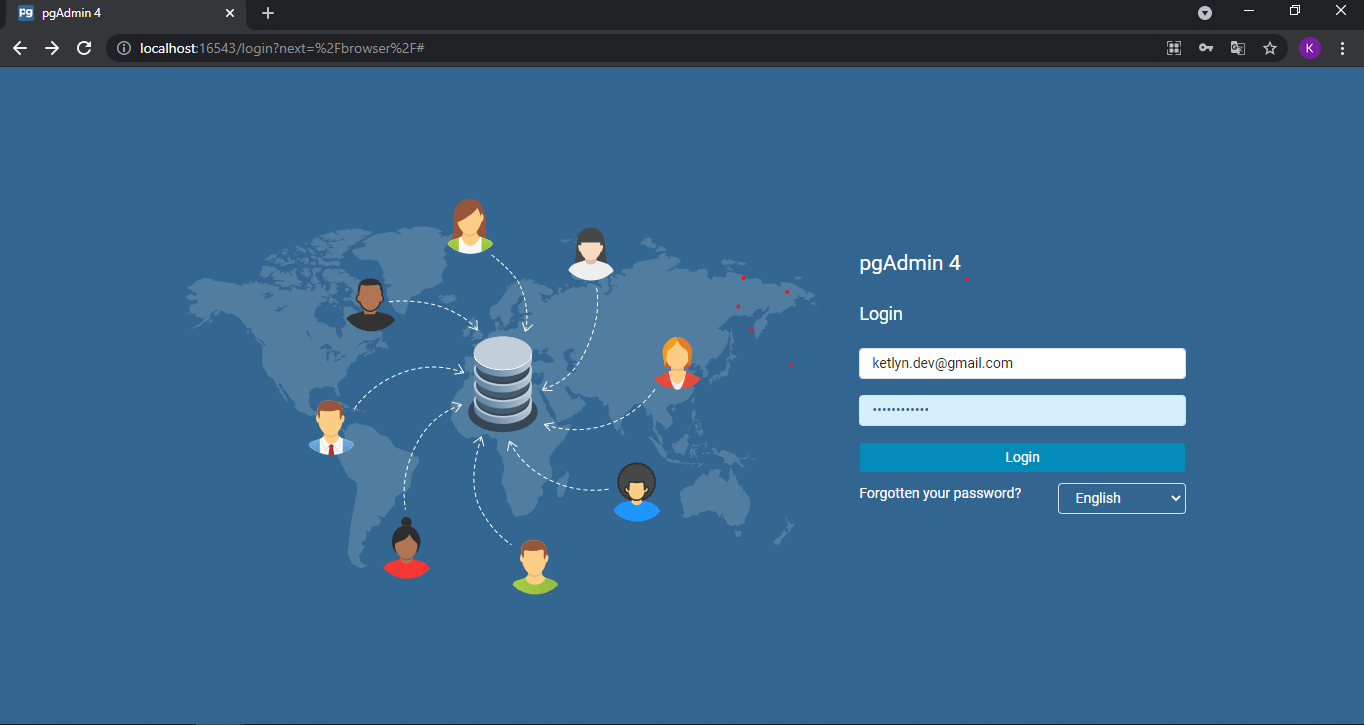 Gerado o ambiente de pgAdmin 4 e de uma de uma instância do PostgreSQL através de containers.