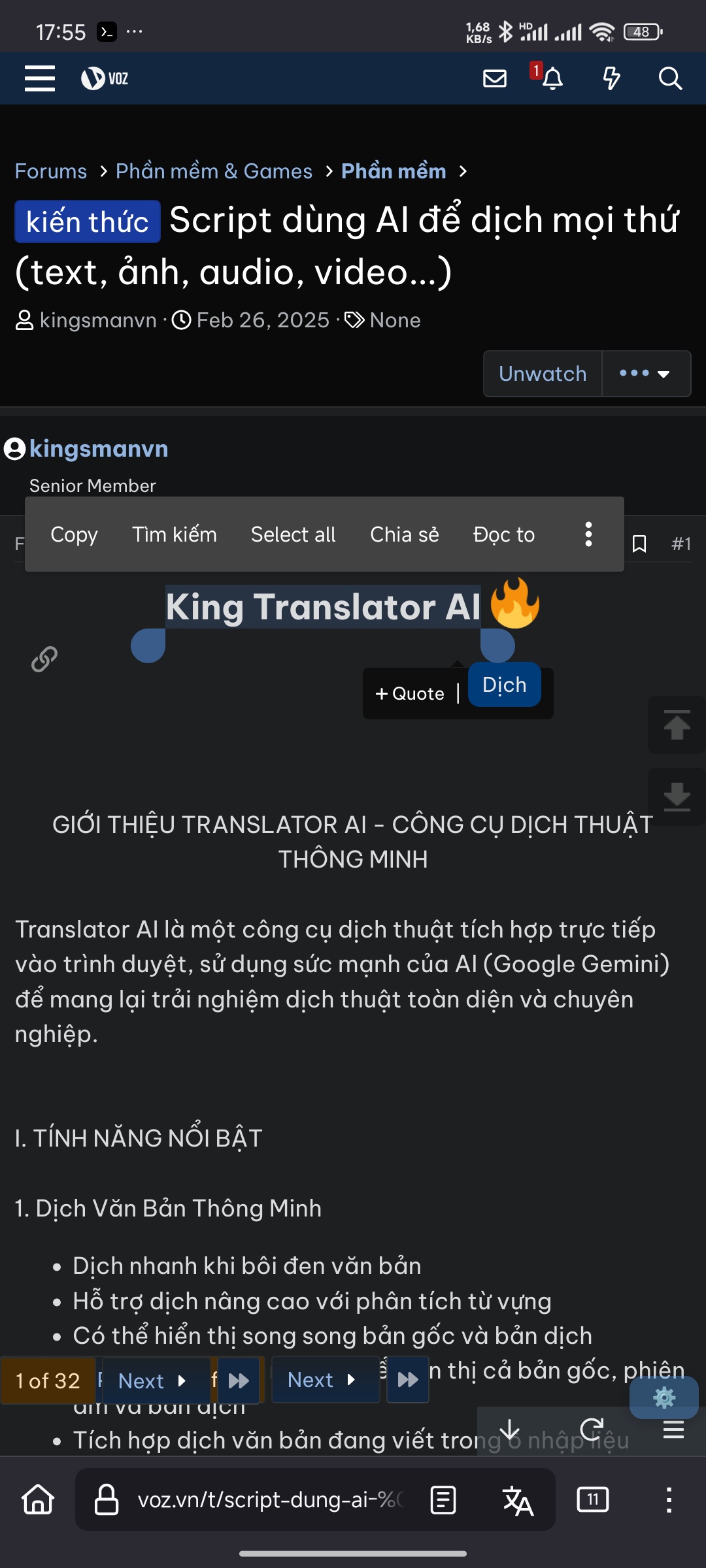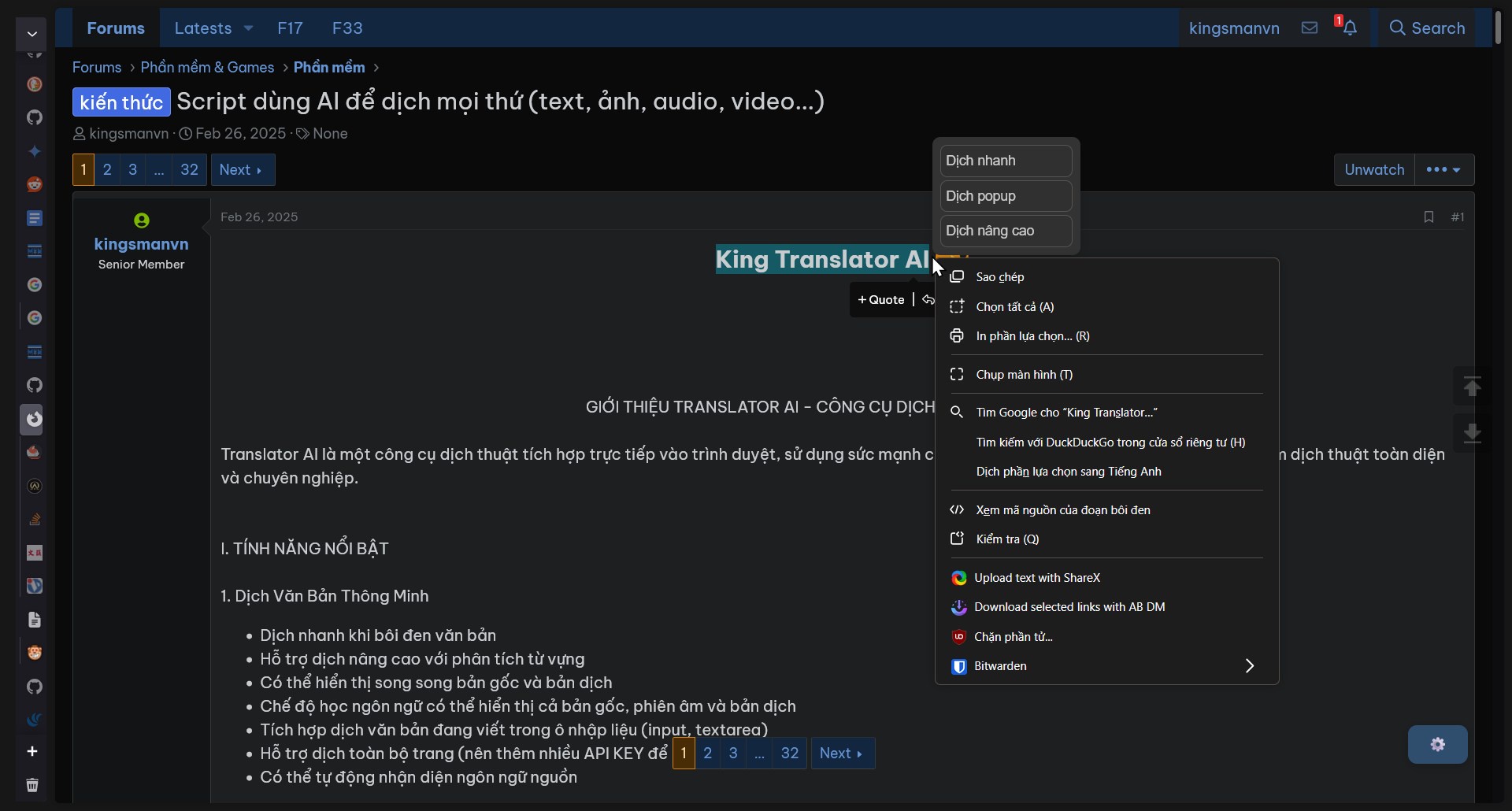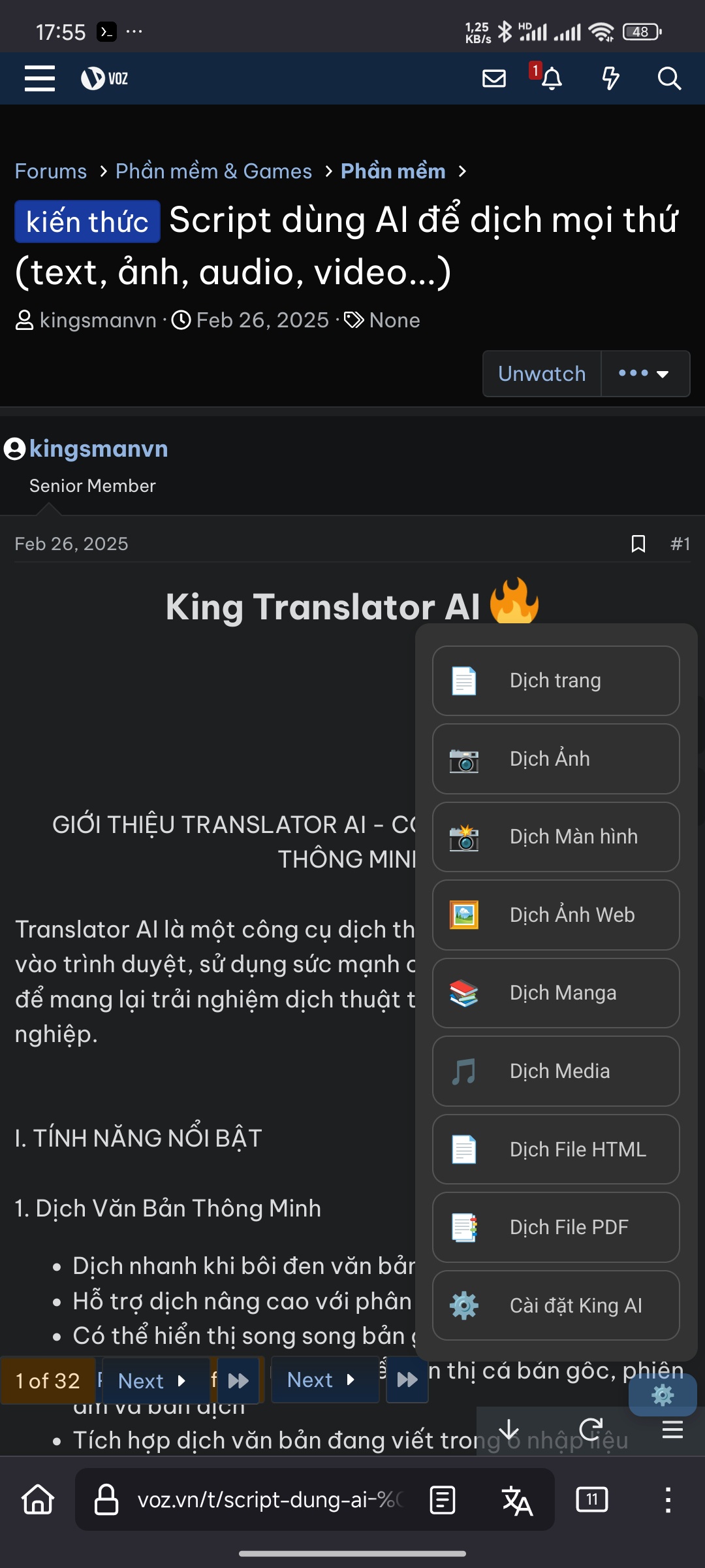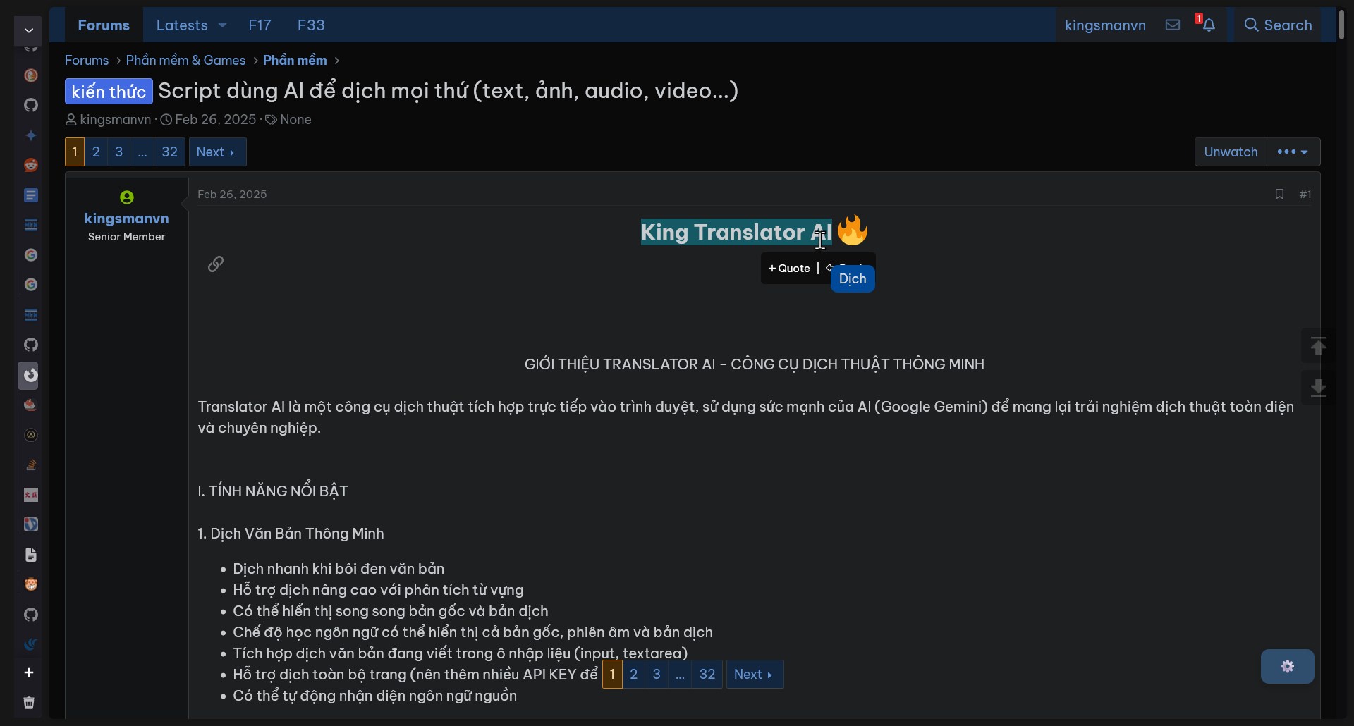 King Translator AI is a powerful userscript that transforms your browser into an all-encompassing translation powerhouse. By integrating the most advanced AI models, the script allows you to break down any language barrier, from simple text translation to complex video analysis, all with just a few clicks.