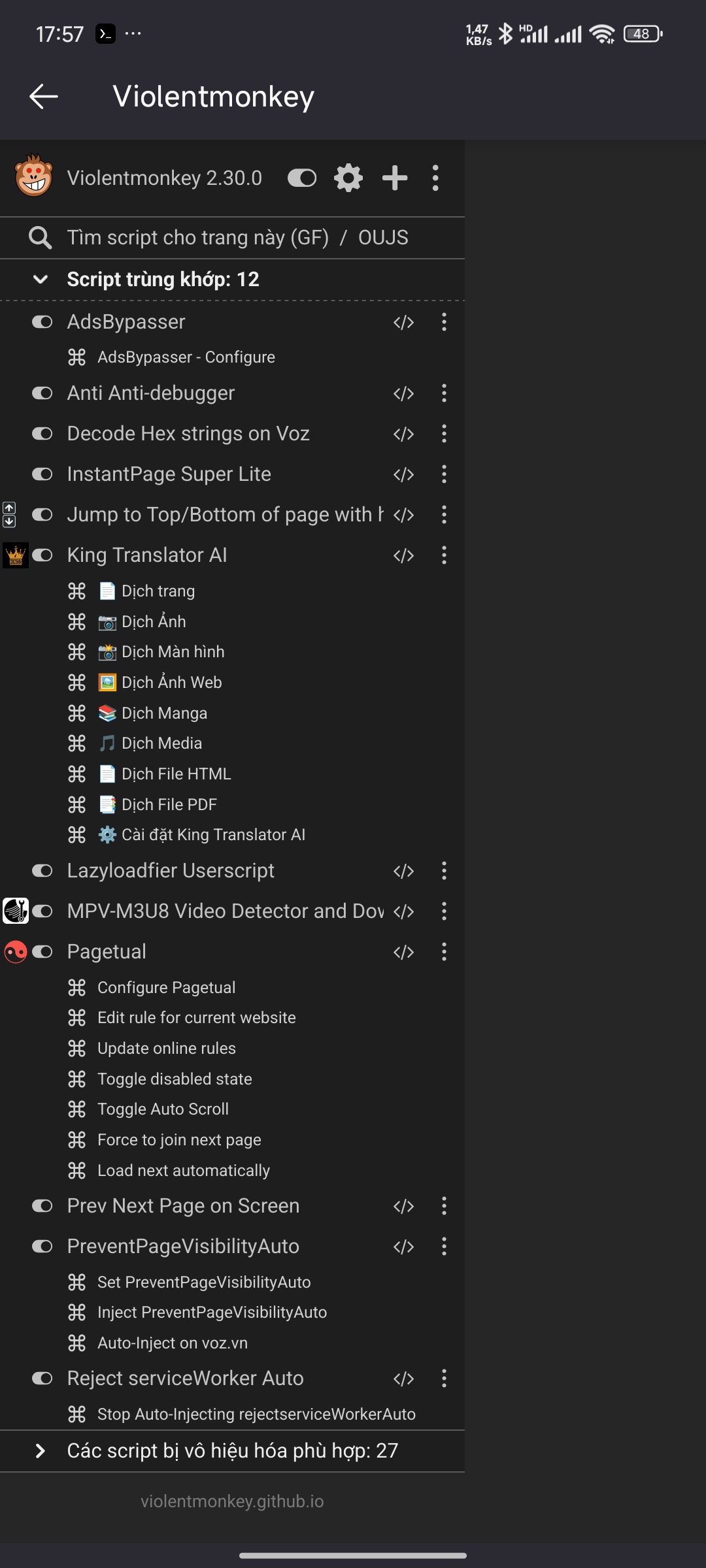 - Firefox: Install Violentmonkey or Tampermonkey.