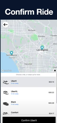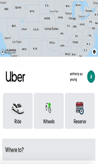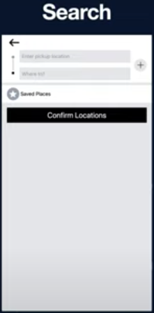 User could login their googl account to access Uber service, search paged is viewed to choose the pickup and dropoffer location. User also see the locations where they choose and see models of vehicles and their fares they could choose.