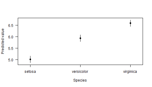 cplot(lm(Sepal.Length ~ Species, data = iris))## xvals yvals upper lower
