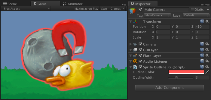 SpriteOutlineFx is an image effect which adds outlines to sprites.