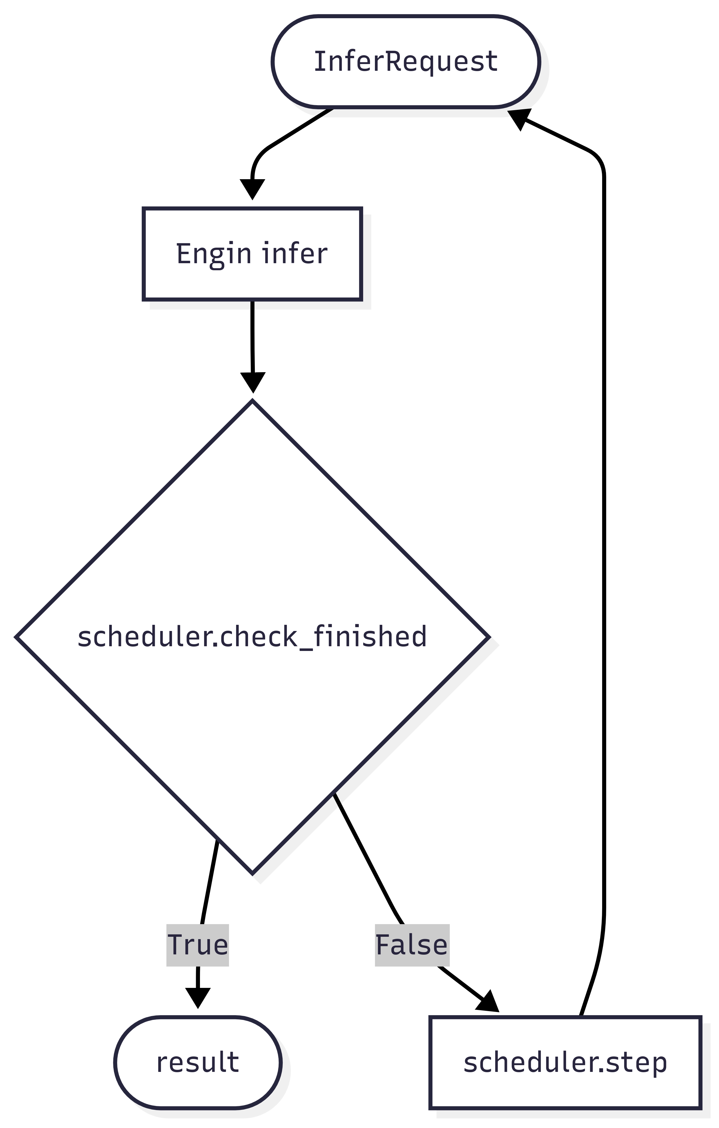 check_finished方法判断当前轮次推理是否应该结束 - 推理请求构造:通过