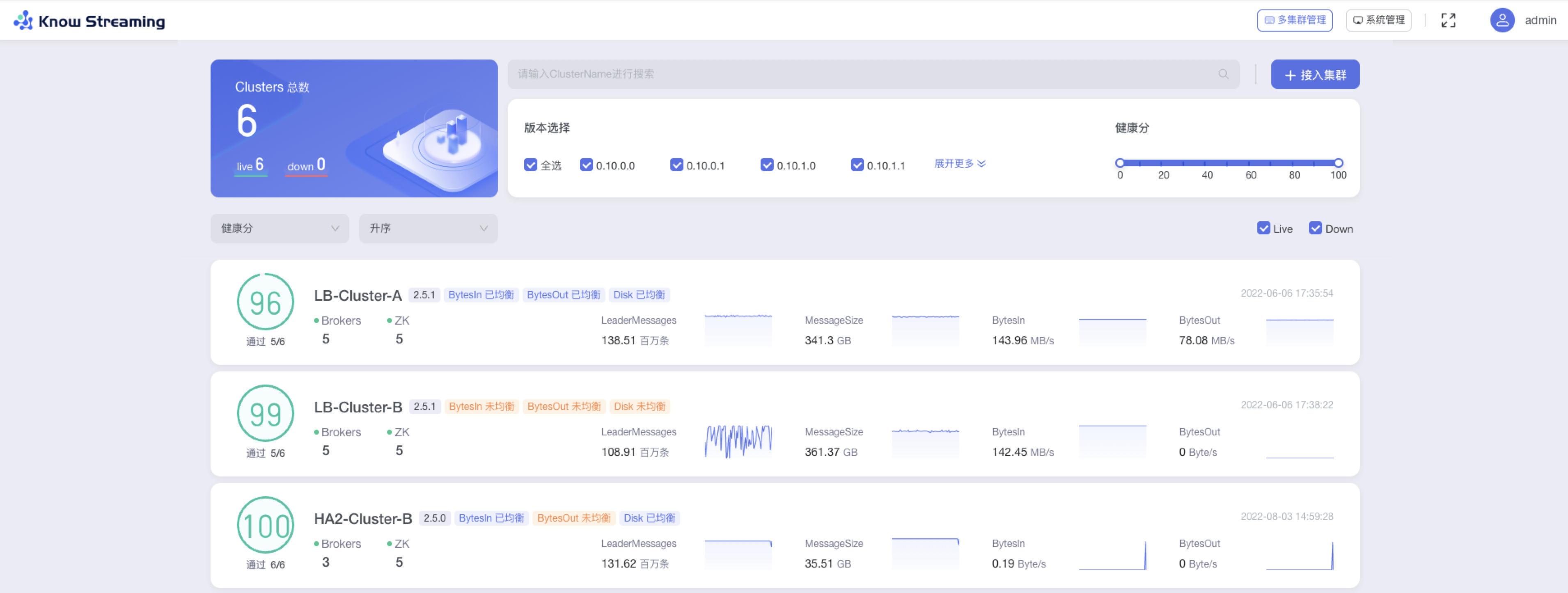 - Broker 信息:包含名称、版本、均衡状态