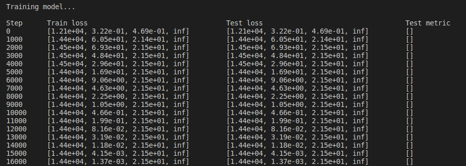 See FAQ Q: What is the output of DeepXDE? How can I visualize the results? |
