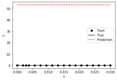 @tareqath @lululxvi Quick update. With the following code I am able to reproduce the overall change in the ODE but still I think that boundary conditions are not well defined: But true results are set to 0 and T values are completely wrong. Note that the problem is: |