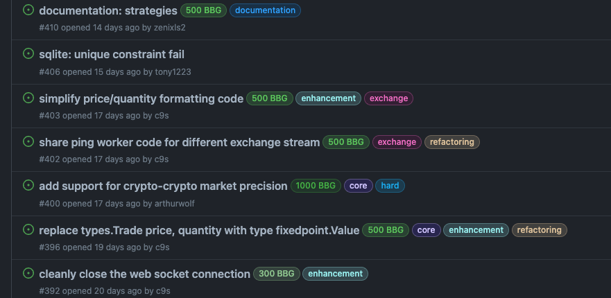 在 Twitter 上面看到 bbgo 直接用 label 來標示 issue 懸賞,覺得這個機制簡單好用,我們也可以以這個作為開頭,等到跑了一陣子之後再來用 smart contract 代替。