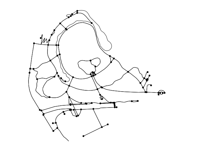 #> [1] 106I am not sure how osmnx builds the network but with sfnetworks some extra steps would be needed to get all the information from the GRAPHML file. This is one way I solved this based on the sfnetwork that includes the EMPTY edge geometries # Filter the network to contain edges with a geometry
