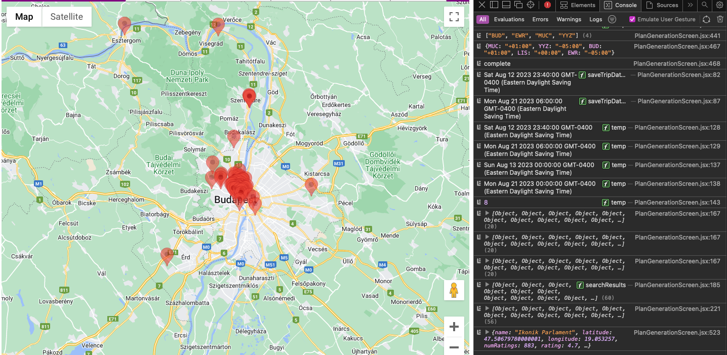 AmadeusAPIandLufthansaAPIcalls to find the cheapest flights in the browser environment and throttled their usage to obey rate limits - Utilized Google Maps