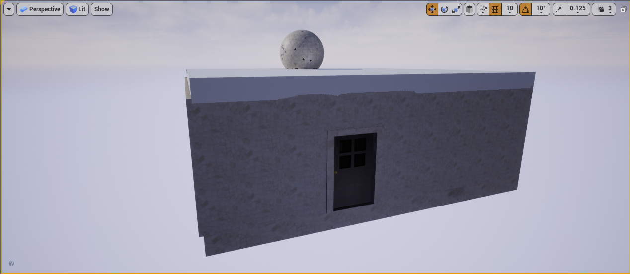 - 1- Created a New Level and made a house with 2 doors and a few objects in it using static meshes and importing some textures