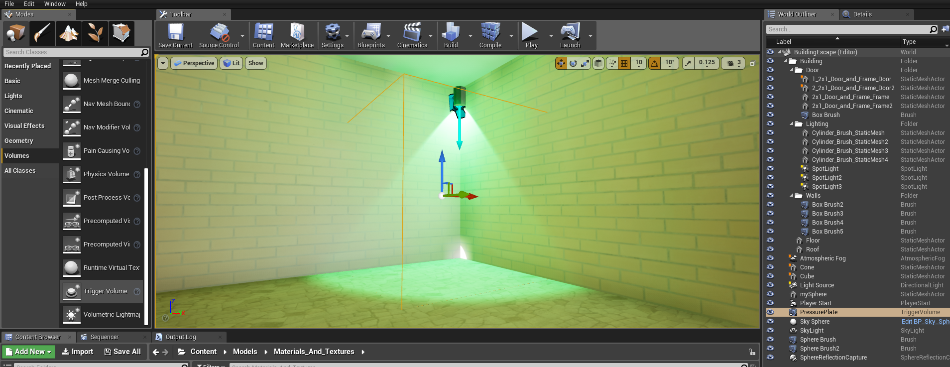 First we need to include a trigger volume object in our world and this will be our pressure plate