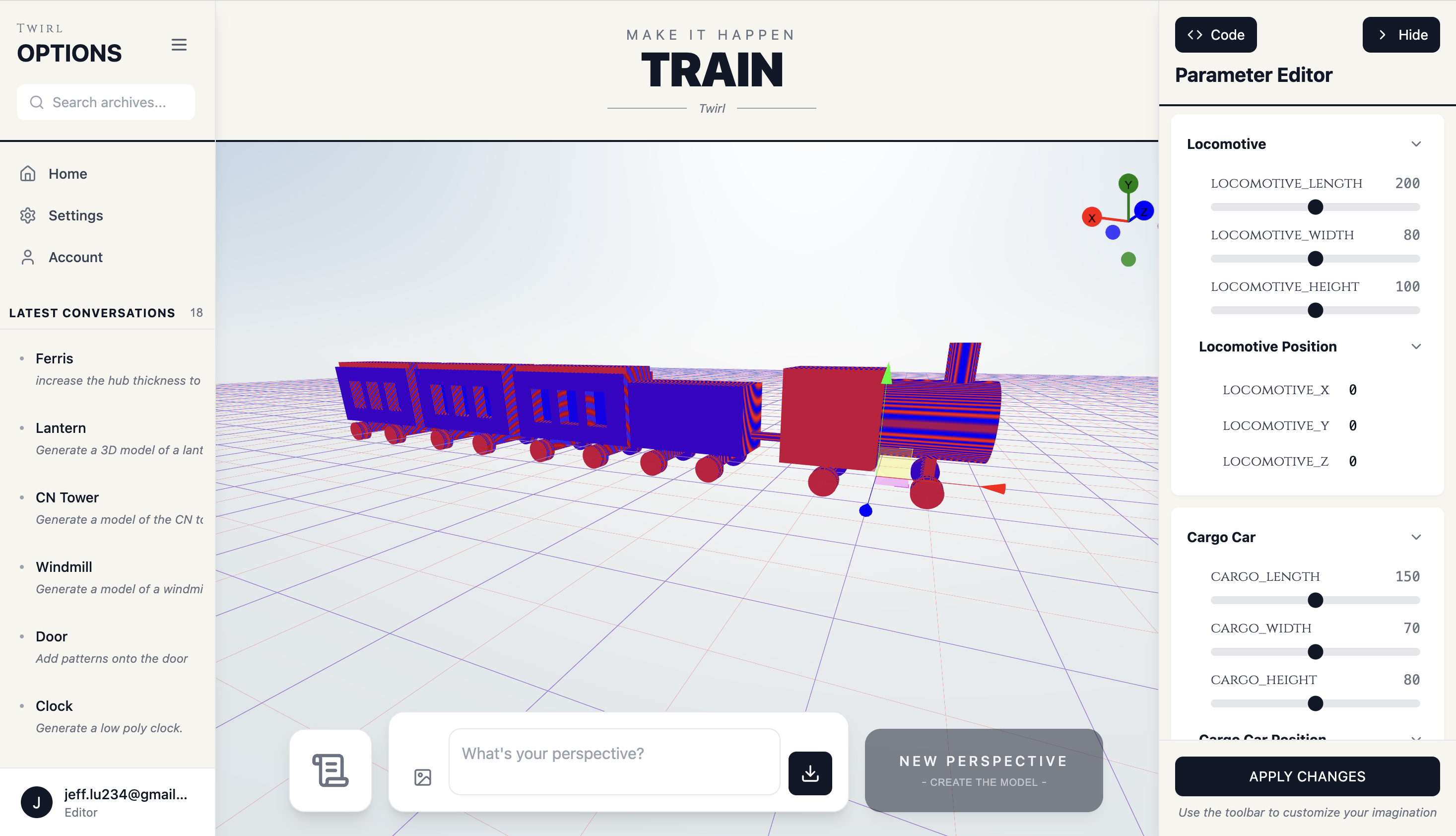 Twirl doesn't just stop at visualization. It turns perspectives into physical reality. Models can be exported for 3D printing, making it possible to create functional objects directly from ideas. During the hackathon, we tested this end-to-end pipeline by designing and printing a chair model generated entirely by Twirl, with 0 human assistance.