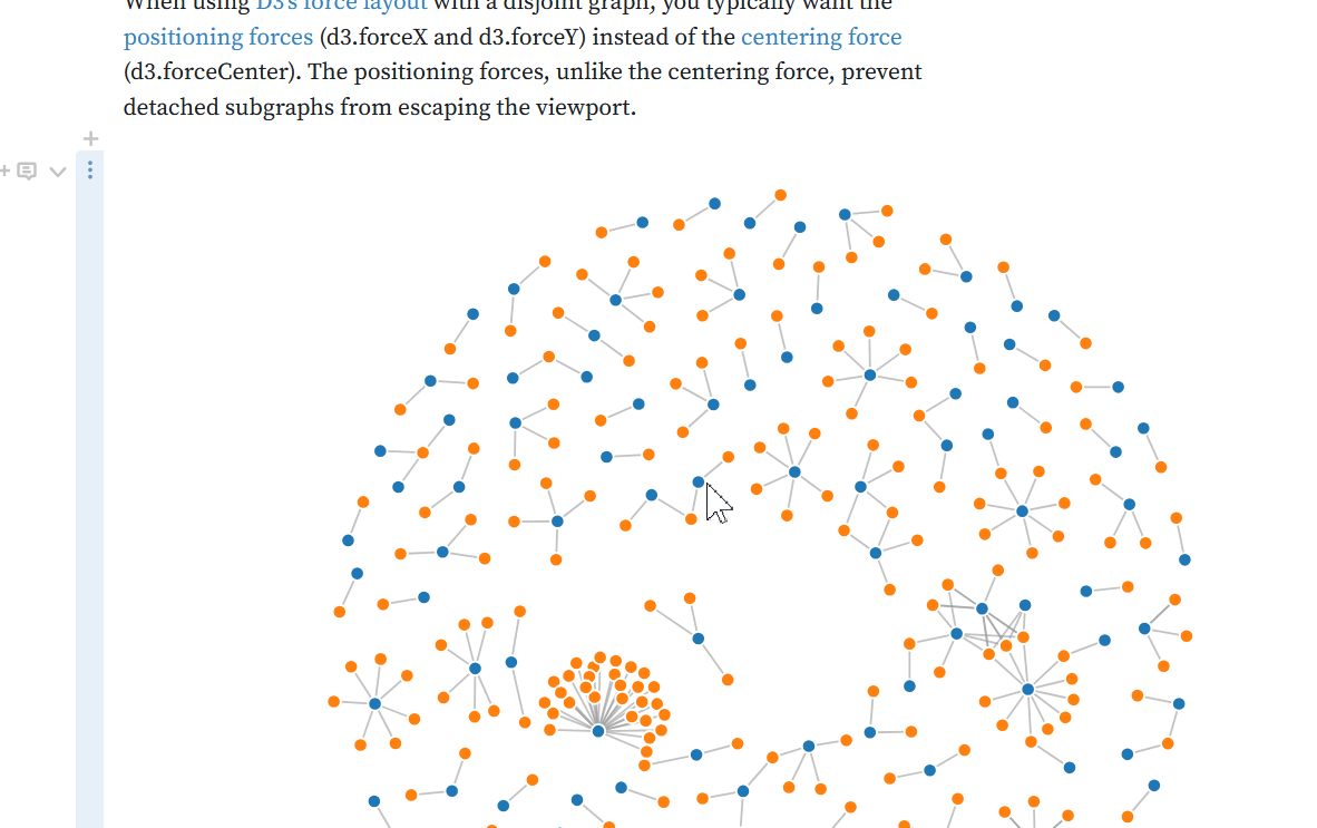 Has anyone been able to figure this out? I'm looking for a more fluid graph, similar to the one featured on the d3.js Disjoint force-directed graph demo and in Obsidian + Logseq. I would also love to have a page-specific graph like Obsidian/Logseq, which either only displays the other notes connected to that note (related: #175): OR displays the entire graph, but highlights its connected nodes, like what we currently see when hovering over the node: |