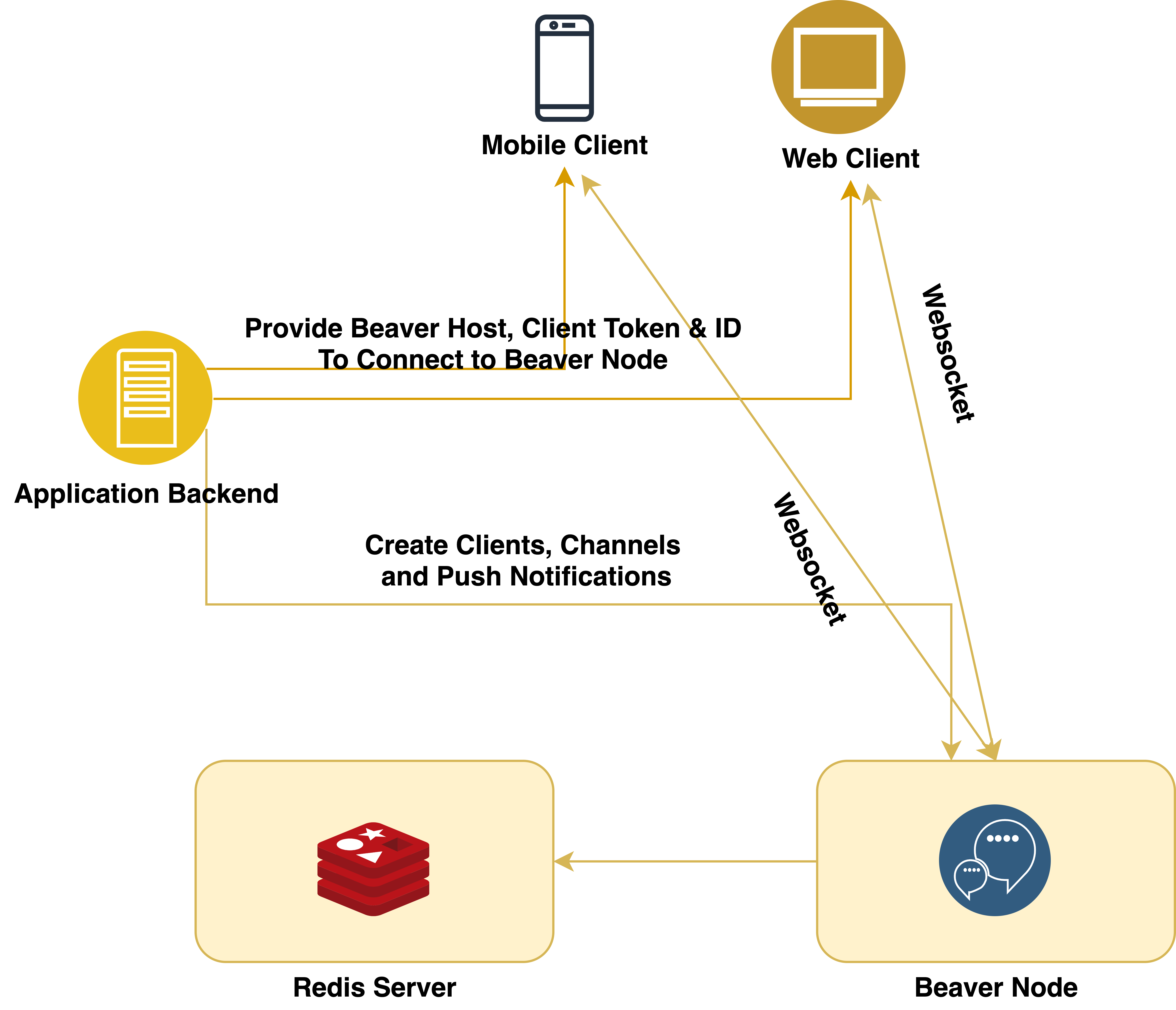 Beaver is a real-time messaging server. With beaver you can easily build scalable in-app notifications, realtime graphs, multiplayer games, chat applications, geotracking and more in web applications and mobile apps.