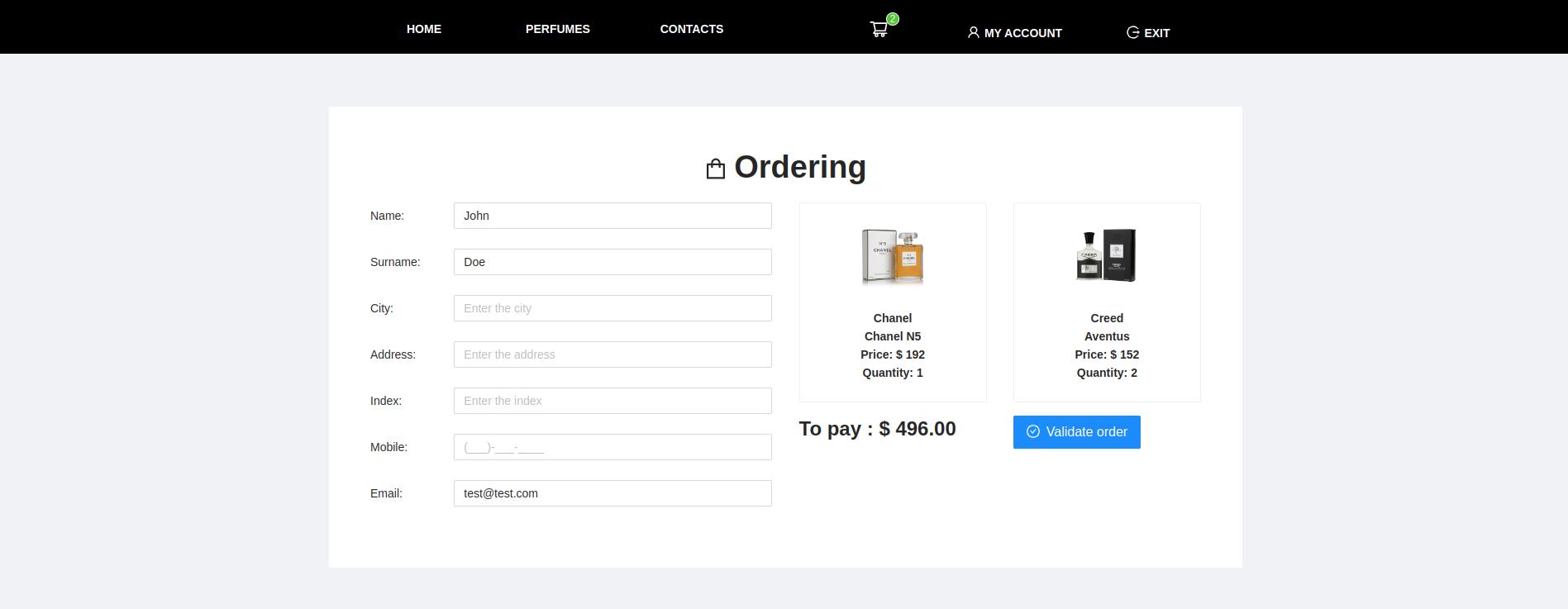 - Customers can order the products in the shopping cart.