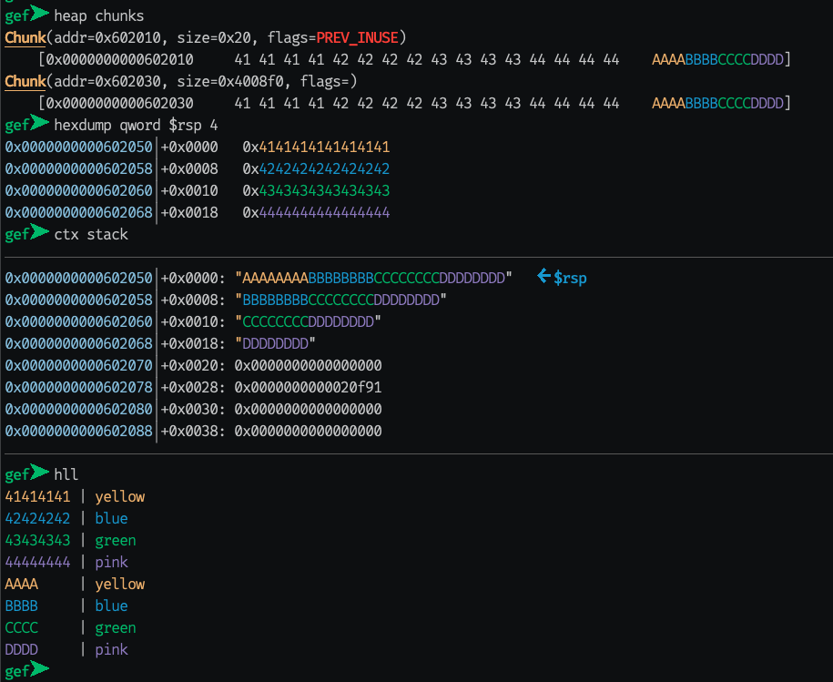 No more endless manual pointer dereferencing x/x style. Just use dereference for that. Or for a comprehensive view of the registers, registers might become your best friend: