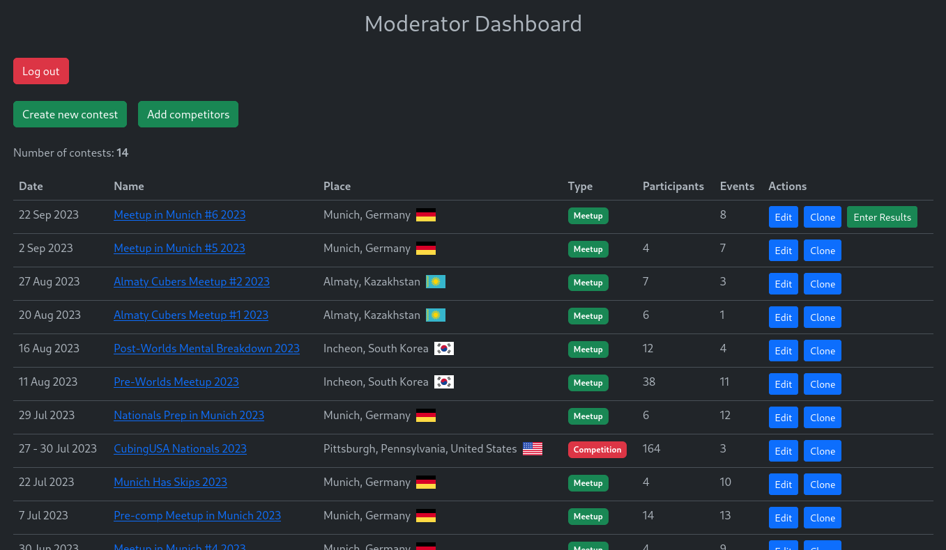 Please contact us at [email protected] if you want to set up your own instance of Cubing Contests. Please do NOT try to deploy your own instance until this project is ready for that (you will find instructions in this section).