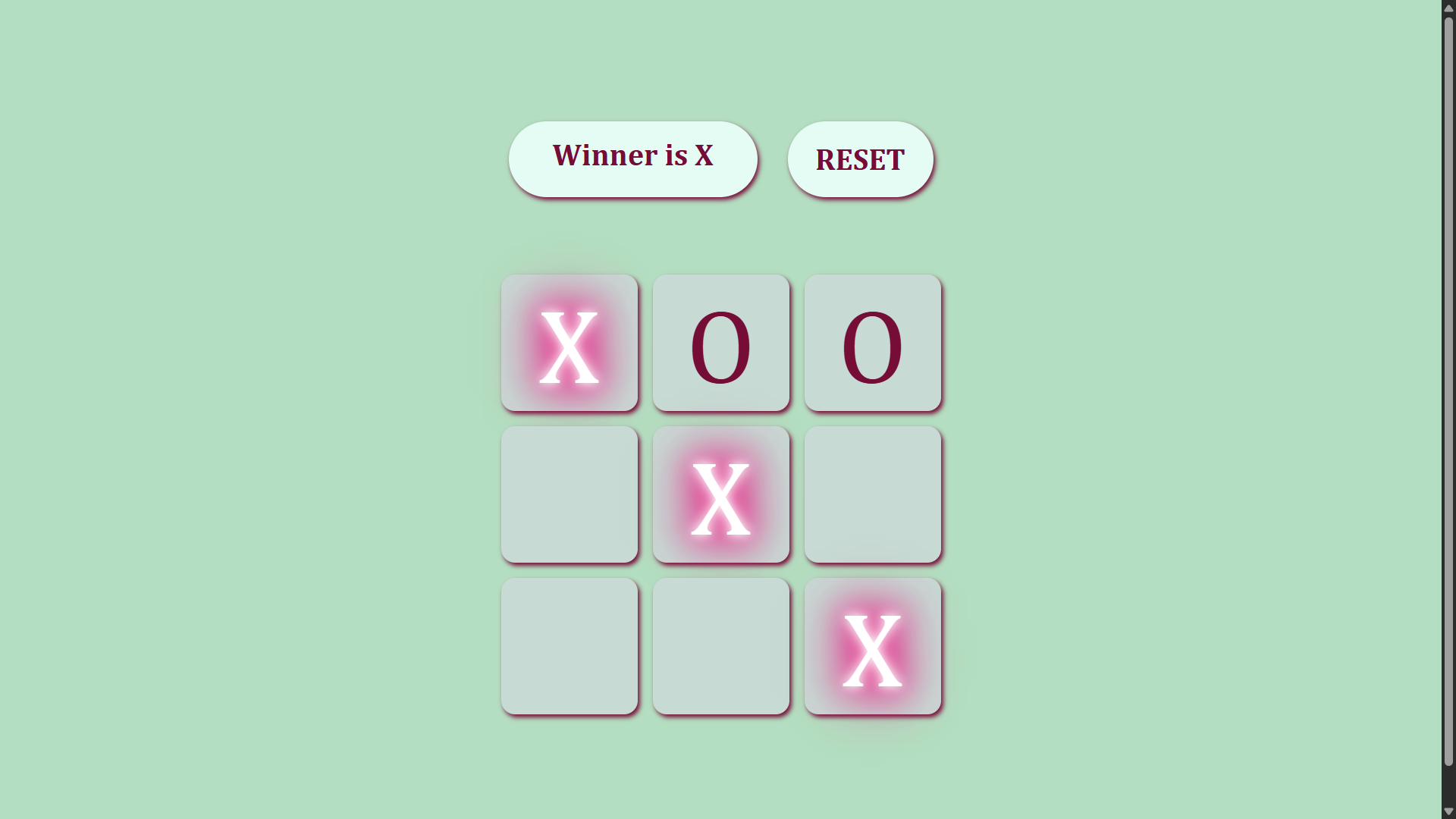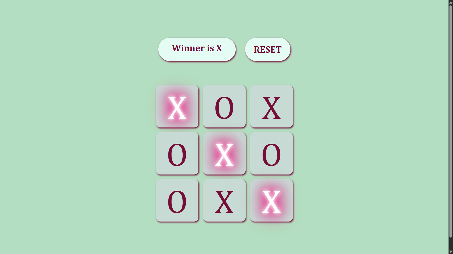 This project is a browser-based Tic Tac Toe game built with vanilla JavaScript, HTML, and CSS. It dynamically generates a 3x3 grid of interactive buttons where two players alternate turns as X and O. The game detects winning sequences across rows, columns, and diagonals, highlights the winning combination with a glowing animation, and disables further moves once a winner is declared. A reset button allows the board to be cleared for a new round. The UI is styled with a custom color palette and responsive design, ensuring smooth play on both desktop and mobile devices.