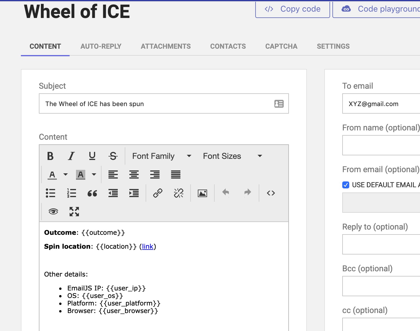 - You'll need to create the template email you'll be triggering (see "about emailjs" for more)
