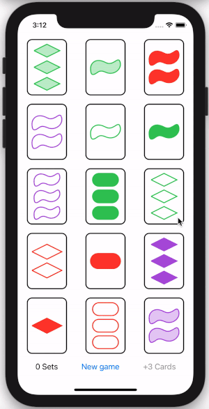 Implementation of the Set game written in SwiftUI for assignment III of Stanford University's course CS193p (Developing Applications for iOS using SwiftUI).