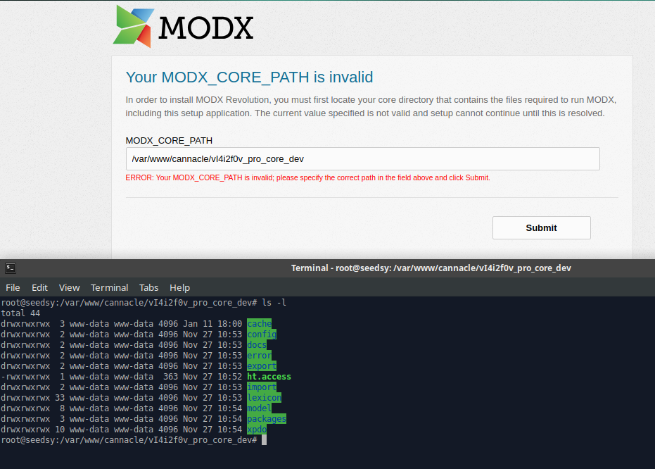 ERROR: Your MODX_CORE_PATH is invalid; please specify the correct path in the field above and click Submit.