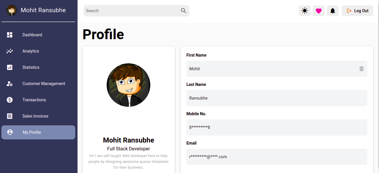 A beautiful Quasar template. This template also includes a variety of features that are required for admin template needs.