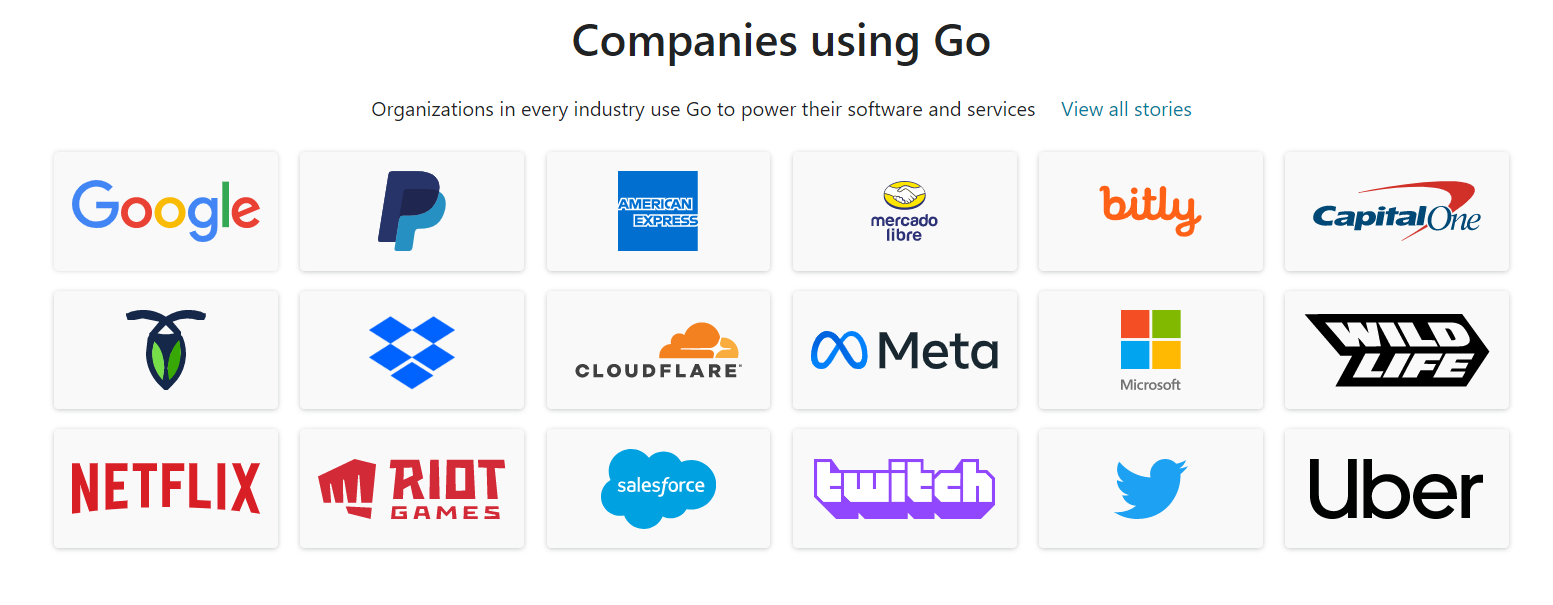 PingCAP 等公司也在大星使用Go语言。国外Google、Facebook等公司也在大量使用Go语言。